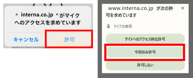 ご利用になるには、必ず「マイク入力を許可」してください。もし、許可しないを選択してしまった場合は、ページをリロードして再度お試しください。