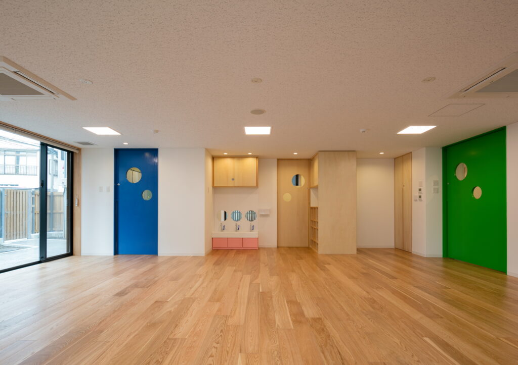 保育方針である、子どもたちが「考え、判断し、行動できる自律した子」に育つ環境をつくるため、園舎全体の空間づくりに携わらせていただきました。