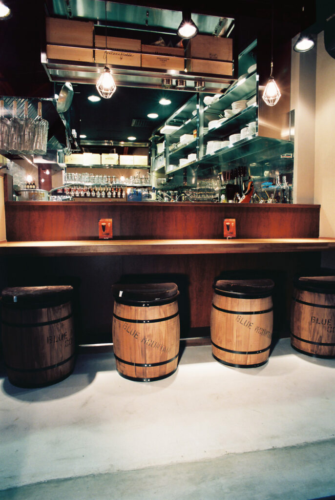 樽を利用したカウンターチェアや温かな灯りのペンダントライトが遊び心を加え、奥まで見渡せるオープンキッチンからは料理の音と香りが伝わります。“イタリアン酒場”として、気取らず日常使いできる居心地のよさを感じられる空間になりました。