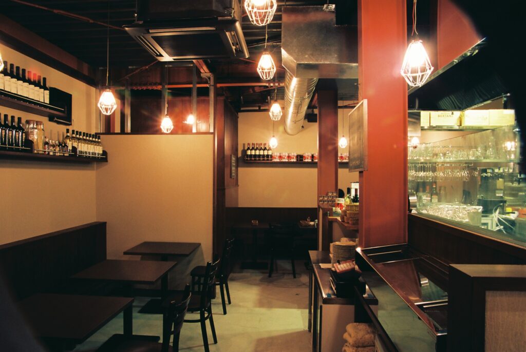 モルタルの床や温かみのある照明を取り入れ、居酒屋らしい親しみやすさを表現しつつ、イタリアンの落ち着いた雰囲気と調和するようにしていきます。